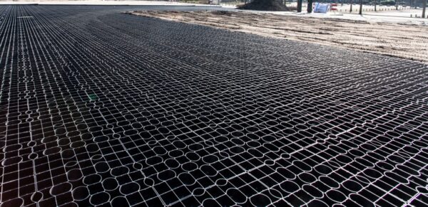 Die Boden Stabilisierungsplatte PRO40 verhindert in Kombination mit einem Vlies/Anti-Wurzel-Gewebe, dass sich der Kies verschiebt oder mit der Unterschicht vermischt. Bei der Verwendung als Rasenfläche verhindert die Platte Spurrillenbildung durch Verkehrslasten.