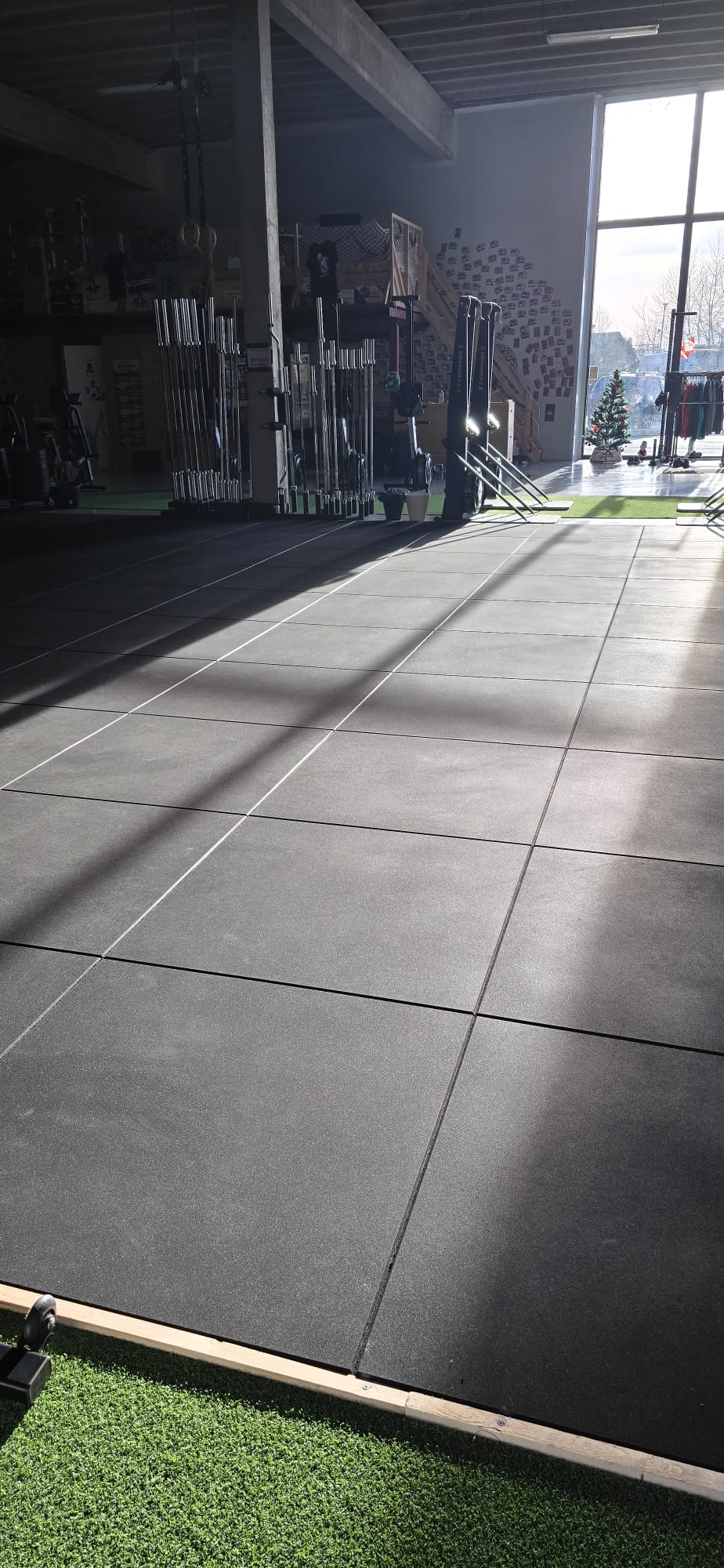 Unsere Clawgrip® “FitPremium” Bodenschutz Gummiliesen eignen sich für Fitnessstudios als CrossFit-, Sport- und Fitnessboden. Diese recycelten SBR Gummimatten haben eine Größe von 100 x 100 cm und eine Dicke von 20 mm, damit sind sie sehr gut für den Einsatz auf Böden mit Cardio-, Physio-, Bodenturn- oder Home-Gym-Einrichtungen eignet. Schützt Ihren Boden vor mittelschweren, punktuellen Belastungen von bis zu ~120 Kg. Die ebenfalls bestellbaren 1,5 cm oder 3 cm dicken Premium-Fliesen eignen sich sehr gut für andere Belastungsklassen. Sie können die Bodenfliesen als schützenden Bodenbelag auf verschiedenen Untergründen und für Unterböden verwenden, bei denen Sie die Auswirkungen der verschiedenen Gewichte reduzieren möchten. Die Bodenfliesen verfügen über eine antiporöse und sehr pflegeleichte Oberfläche. Klassische Bodenfliesen für Fitnessstudios oder Oberflächen mit Spielplatzfliesen, die in der Oberfläche grobporiger Natur sind, verunreinigen mit der Zeit leicht, was bei diesen Fliesen nicht der Fall ist. Dies ist ein umweltfreundlicher Bodenbelag. Die Fliesen werden aus ungiftigen und VOC-armen Polyurethan-bindenden Rohstoffen durch Recycling und wiederaufbereitete Produktion hergestellt. Es sind keine Verunreinigungen wie Metalle, Steine oder andere Kunststoffmaterialien enthalten, sodass auch der Kontakt mit der Haut unbedenklich ist. Außerdem handelt es sich um eine metallfreie Sportfliese. Bevor Sie sich für den Kauf eines günstigeren Bodens für Ihre Anwendung entscheiden, fragen Sie unbedingt Ihren Lieferanten nach der Herkunft, der verwendung von allergiefreien Materialien und nach der Material Dichte. Produkte mit einer geringeren Dichte sind weicher und nicht stark genug für Fitness-, CrossFit- und Sport- und Spielanwendungen.